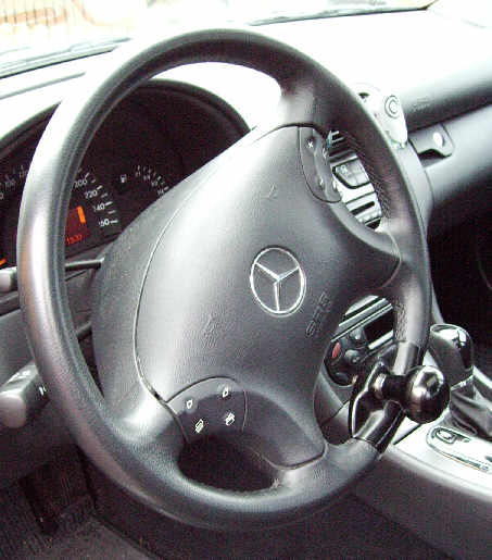 Aufgrund meiner Behinderung musste ich mir ein neues Auto zulegen. Der TÜV Beauftragte empfahl mir einen Mercedes Benz entweder eine C oder E Klasse, da sich bei diesen Fahrzeugen kein Hebel auf der rechten Seite befindet und dadurch fast keinerlei Umbaukosten entstehen. Ich musste ein Lenkradknopf einbauen lassen, der Einbau wurde von Mercedes München bei der Abholung durchgeführt.